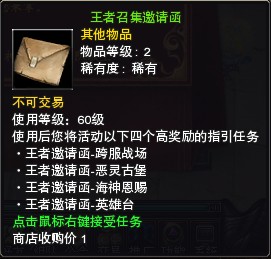 4)、奖励四:【王者召集邀请函】(使用等级60级)