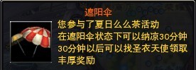 参加活动时,自动获取两个BUFF,一个是变身雪人BUFF(可以取消变身来取消雪人变身),另一个是遮阳伞BUFF,BUFF时间30分钟。