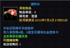 右键可直接开启遮阳伞,开启后将获得一个可乐杯,还有机会获得可交易的4级或5级宝石箱、白金贵族卡等珍贵道具。