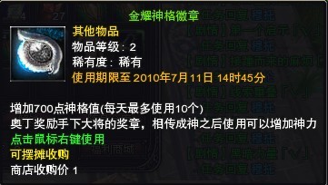 金耀神格徽章:可叠加,可转移,时限7天。