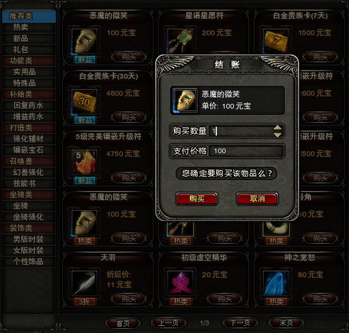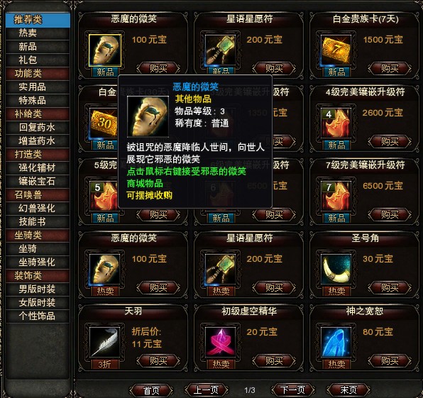 点击【众神宝藏】中【新品】按钮,即可找到“恶魔微笑”(见图二)。