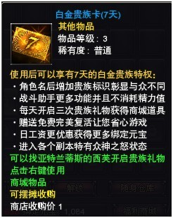 白金贵族卡让您获得VIP待遇,享受游戏特殊功能和超实用道具奖励,道具的价值比商城更优惠有效。