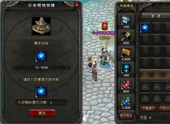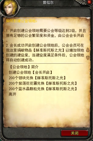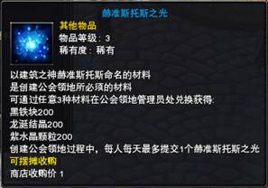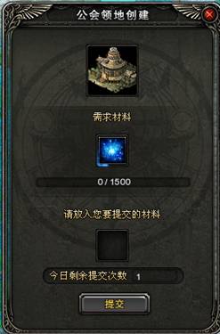6、创建公会领地,需要提交的材料为【赫准斯托斯之光】。