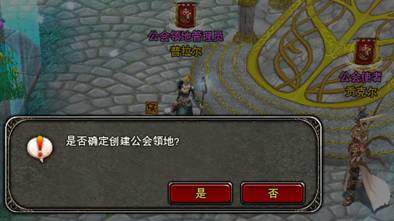 3、选择后弹出提示框体,选择【是】,即开始创建公会领地。