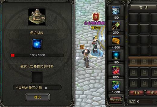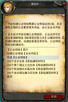 注:会长成功开启创建公会领地后,公会会员可在【普拉尔】处捐献物品【赫准斯托斯之光】以增加领地创建的建设度。