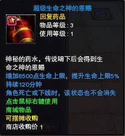 增加8500点生命上限,提升生命上限5%,持续120分钟 角色死亡或下线时,该状态也不会消失 |