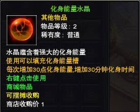 使用可以填充化身能量槽 每次增加30点化身能量,增加30分钟化身时间 |