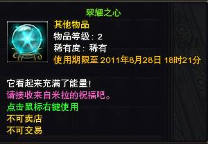 翠耀之心:点击可获得大量经验,每天限使用一次(不可交易)。