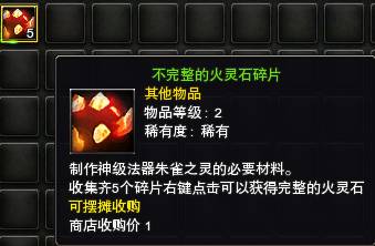 注:新杀戮地图【诸神刑场】中的【朱雀】BOSS掉落【不完整的火灵石碎片】。