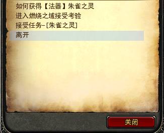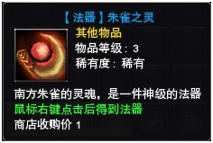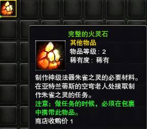 注:做朱雀法器任务的时候,【完整的火灵石】必须在包囊中随身携带,否则任务将无法完成。