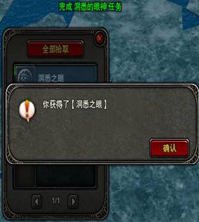 6、到达【法器】洞悉的眼神,任务单上提供的坐标,即可完成任务,并同时获得合成【灵魂容器】朱雀核必要材料之一的“洞悉之眼”。