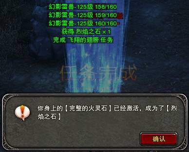 7、到达【法器】飞翔的翅膀,任务单上提供的坐标,完成击杀【幻影雷兽】任务后,身上所携带的【完整的火灵石】就会自动激活,进化成为【烈焰之石】。