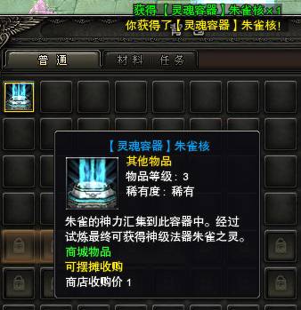 8、当身上凑齐了合成【灵魂容器】朱雀核3种材料(如下图一)后,点击【烈焰之石】就可以获得【灵魂容器】朱雀核。