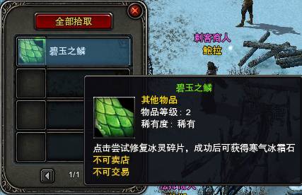 注:新杀戮地图【青龙岛】中的【青龙】BOSS掉落【不完整的冰灵石碎片】。