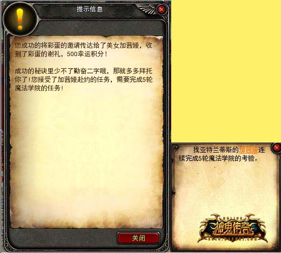 第五步:任务完成后收到500幸运积分奖励,同时接受【加茜娅】委托,连续5轮完成魔法学院的考验。