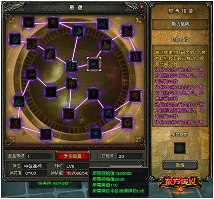 1.星盘界面,将鼠标移到升级星盘按钮上,可以看到升级星盘所需条件。