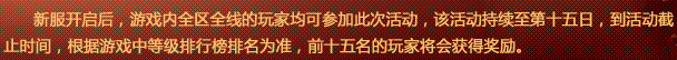1、新服开启后,游戏内的玩家均可参加此次活动;