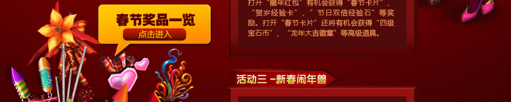 春节卡片 | 参与春节活动可获得,可参与春节抽奖一次,有几率获得四级宝石币,高级强化水晶等奖励。 |