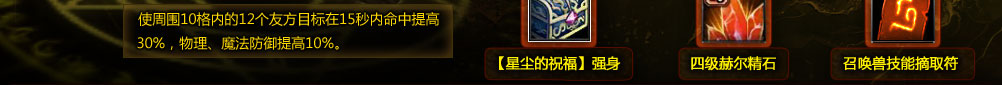 星尘 | 开启后可以获得:【星尘之语】强身、力量星尘(2级)、智力星尘(2级)、敏捷星尘(2级)、菱形印记魔棒*10。 |