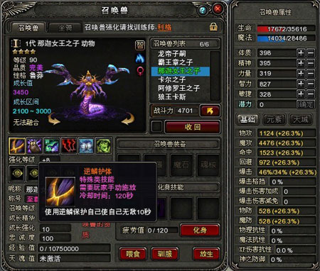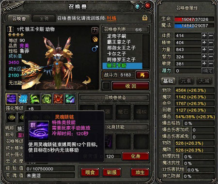 召唤兽定位:大范围群攻,刷怪、PK好帮手。