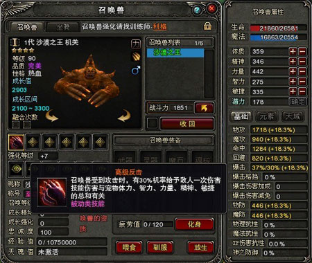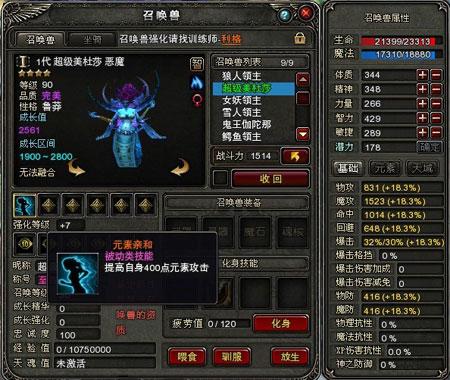 召唤兽定位:前期超强提高攻击的被动技能,刷怪好帮手。