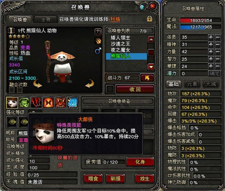 召唤兽定位:刷怪、PK好帮手。