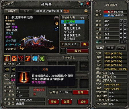 召唤兽定位:强力单体输出技能,刷怪好帮手。