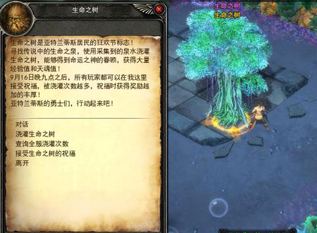 9月16日晚九点后玩家还可以到亚特兰蒂斯生命之树处接受生命之树的祝福,获得海量经验奖励。全服的浇灌次数越多,奖励越丰厚!