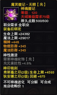 3. 无暇品质以上魔灵神魂装备还能铭刻第二格神印。
