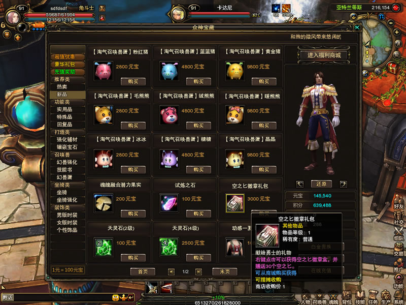 | 至尊礼盒 | 打开后可以获得500万金币的奖励。点击鼠标右键使用。 |