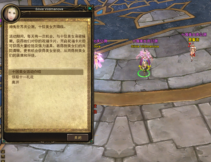 1、国庆期间,您可通过与亚特兰蒂斯NPC-十国美女对话,点击“领取十一礼花”选项。