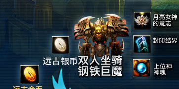 下位神•神魂 | 可在装备改造师利翁处进行神魂镶嵌,提高魂玉属性,下位神神魂属性为:物理攻击+108、魔法攻击+108、生命上线+2700、暴击格挡+2%。 |