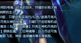 打开后可以获得神秘召唤兽“月亮女神”和月亮女神的强大法力“月亮的泪水”。集齐:黎明的号角、狩猎的长枪、月亮的泪水可以在远古商人处兑换绝世【召唤兽】维纳斯。