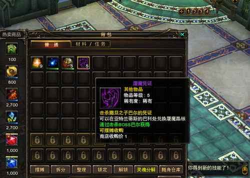 当您拥有15个巴尔的信物时,您可于每日12:00-24:00至8线天使之城或神圣庭院召唤撒旦之子巴尔,击杀其有机会获得屠魔凭证、100级神兵、屠魔声望水晶、海量经验奖励。