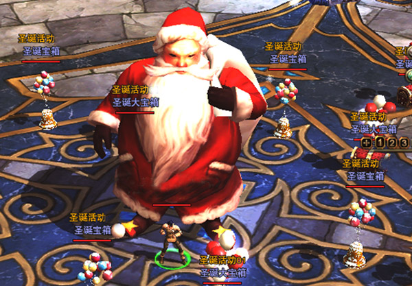 2、华丽的圣诞老人将降临世间并分发圣诞宝箱和圣诞大宝箱,采集宝箱有机会免费获得圣诞时装,圣诞耳包图样,【召唤兽】雪人布鲁克斯兄弟,【坐骑】圣诞雪橇,【背饰】冰晶雪凝,装备强化水晶,召唤兽重生结晶,准神神髓,二级宝石箱,神髓完璧符等丰厚奖励。