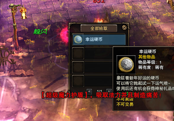 2、击杀试炼谷最终BOSS后,您将有机会获得幸运硬币。