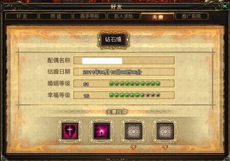 5、按不同的婚姻等级给予不同的幸福经验值奖励。(幸福经验值可以用来升级夫妻技能哦!)