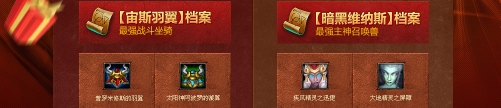 普罗米修斯的羽翼 | 内含普罗米修斯之火和普罗米修斯之翼,普罗米修斯之火是合成【宙斯羽翼】的必备道具。【战斗坐骑】普罗米修斯之翼,强化到满级效果:移动速度+10%、物理防御+240、魔法防御+240、暴击+6%。特殊技能:光明之力(10秒内物理和魔法抗性提高50%) |