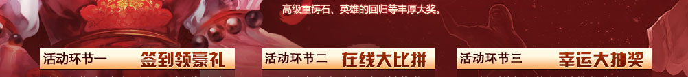 累计在线时间100小时:1级钝厚晶石*5、高级符文*1、300英雄的回归*5、高级重铸石*5