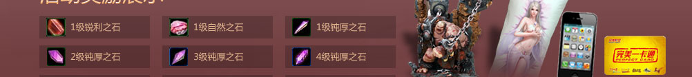 累计在线时间20小时:30元完美一卡通(10名)、1级自然晶石*5(20名)、300英雄的回归*4(20名)