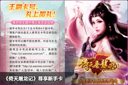 尊享新手卡,内含价值2088元高级道具,60小时双倍经验,50件高等强化极品装备,297个装备炼化符,高达4千万HP/MP的恢复大药,轻松保送50级。