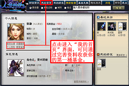 4、点击进入“我的首页”页面,可同通过完善资料收获你的第一桶基金。([完善个人信息]获得基金流程,看这里)