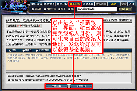6、点击进入“推新致富”页面,如已激活完美经纪人身份,则可生成自己的邀请链接,发送给好友可以获得基金奖励。(还不是完美经纪人的请点这里,[邀请好友]获得基金流程,看这里)