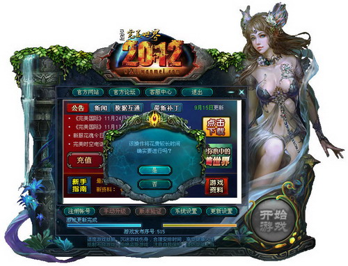说明:1、安装游戏后桌面会出现《完美世界国际版》的图标,鼠标双击图标,会出现游戏的更新画面,选择更新服务器后,开始进行更新。