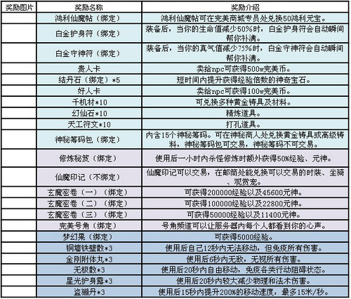 抽奖奖励一览