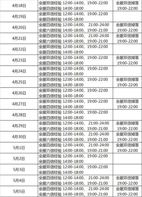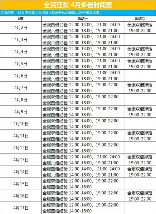 - 全民狂欢 4月多倍时间表