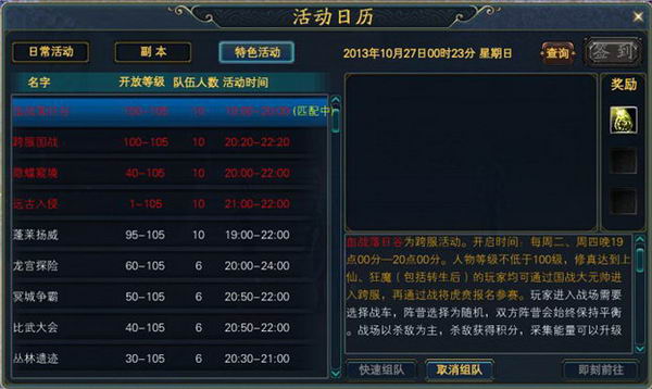 2副本自动组队功能:通过玩家发起,系统自动匹配,将需要进行同类副本操作的玩家组成一队。(需满足副本需求)