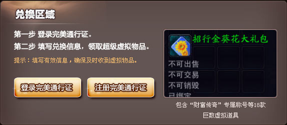 兑换方法:登录下方兑换专区,填写兑换序列号及相关信息验证,兑换成功后虚拟道具