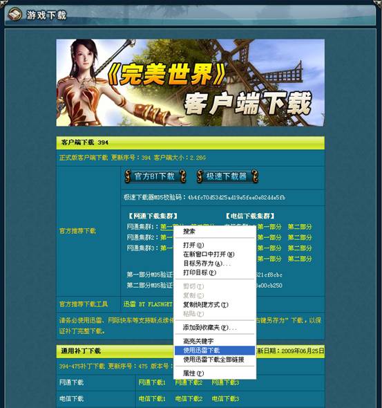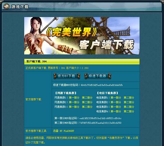 3.下载客户端,可以选择“官网BT下载”,“极速下载器”或者使用自己的下载工具进行下载,鉴于南北网络的不同,您可以在“电信”和“网通”2种不同的网络当中选择适合自己的进行下载。