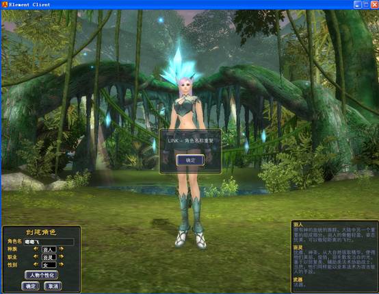6. 人物名称。在左下角的角色名栏中填入您人物角色的名称,如果出现下图所示提示您就需要换一个名称了。
